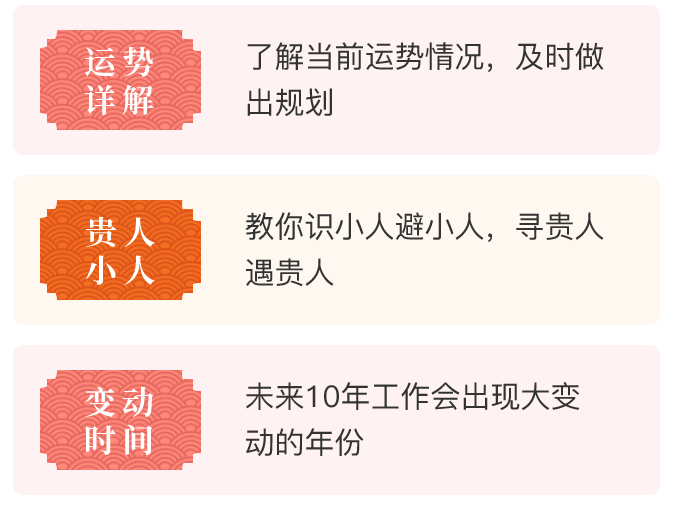 2、在您体验测算服务时,我们需要获取您的姓名和生辰命格 (出生日期),为了保证数据准确性,我们建议您提供真实的个人信息,若您提供的信息有错误,会对测算结果的准确性造成偏差。我们保证您的所有个人信息除了用于生成测算数据以外,不会用于其他用途。